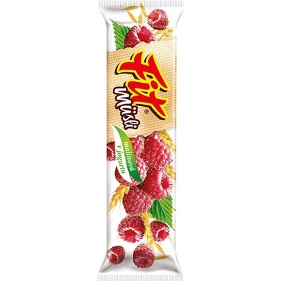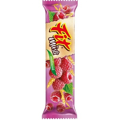 Fit Musli malinová tyčinka 30g Tyčinka plná energie, ovoce a oříšků Složení: Škrobový sirup, Ovesné a pšeničné vločky 22%, Rozinky (rozinky, slunečnicový olej), Extrudovaná kukuřice, Sušená jablka, Rostlinný tuk (palmový), Sójová krupice, Malina granulát 2, 5%...