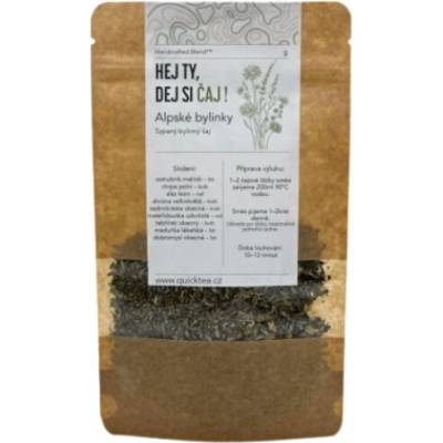 Doplněk stravy QuickTea Alpské bylinky - bylinná směs. Bylinný čaj Alpské bylinky je směs devíti rostlin, které dohromady vytvářejí jemný, květinově–bylinný nálev s lehkou, hladkou texturou. Každý doušek připomíná letní louku po dešti – svěžest, čistota a klid. V chuti...