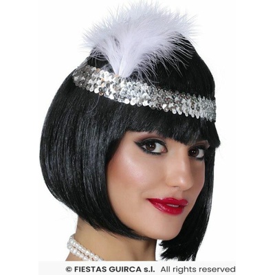 Flitrová retro čelenka s péry od společnosti Widmann vám vkusně doplní váš karnevalový kostým při příležitostech stužkovacích večírků, karnevalových akcí, apod. Vraťte se do 30. let a naučte se, jak se tančí Charleston.