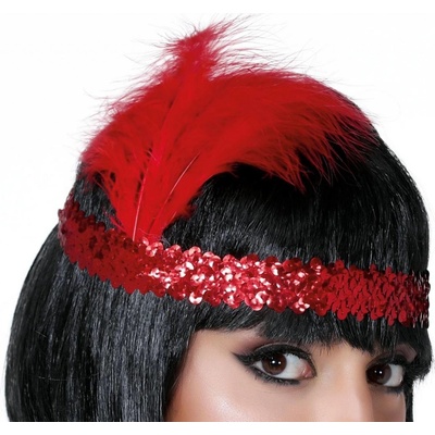 Pro 20. a 30. léta minulého století je charakteristická hudba, tanec a večírky ve stylu Velkého Gatsbyho. S tím je spojená i typická móda flitrových šatů, zdobených čelenek, rukavic a boa. Tato flitrová čelenka charleston zdobena pírkem v několika barevných provedeních...