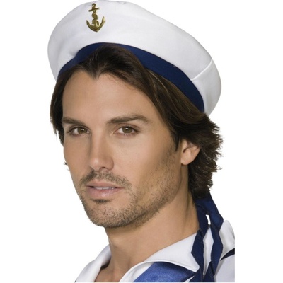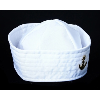 Bílá námořnická čepice hojně využívaná v americkém námořnictvu z vás v kombinaci s pruhovaným třičkem rázem udělá námořníka jako řemen.