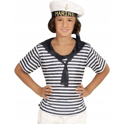 KOSTÝM NÁMOŘNÍK TRIČKO + ČEPICE 116 Sada obsahuje: - tričko, - čepice. Pruhované tričko s krátkým rukávem, barva tmavě modrá s převázaným límcem. Pokrývka hlavy námořníka v podobě bílo-modré čepice s nápisem „Marine“. Kalhoty nejsou součástí sady! Kostým je...