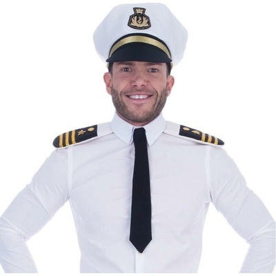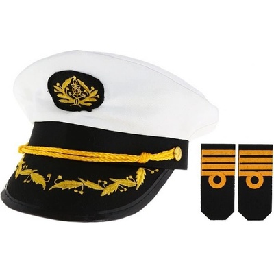 Karnevalová čepice kapitán námořník výška: cca 14 cm obvod: cca 60 cm Bílá čepice z měkkého a na dotek příjemného materiálu, součástí sady jsou i tematické...