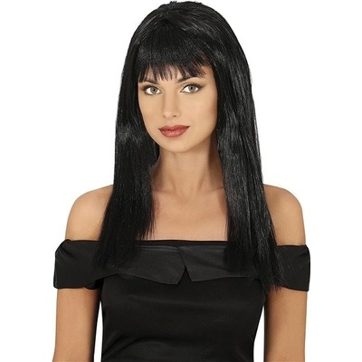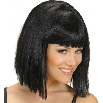 Černá paruka s ofinou, která se hodí ke kostýmu Kleopatry, ke kostýmu na charleston nebo hippie. Ideální na karneval, párty nebo tématické akce.
