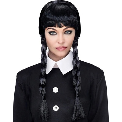 Dámská paruka - Wednesday s ofinou Váš karnevalový či Halloweenský kostým, může působit důvěryhodněji i díky různým doplňkům jakým je černá paruka s copy, typická pro...