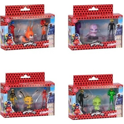Tři kouzelné figurky z pohádky Miraculous: Beruška a černý kocour s razítky. Tyto figurky mají ve spodní části razítka, takže děti si mohou ozdobit školní práce, vytvořit nové...