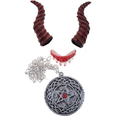 Karnevalový doplněk - sada pro čerta obsahuje rohy na gumičce, falešné zuby a řetízek s medailonem. Skvěle doplní maškarní kostým, na Mikuláše nebo na strašidelnou Halloween...