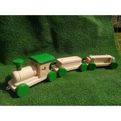 Dřevěná mašinka se 2 vagóny – ve 3 barevných variacích. Spolehlivě převeze a odveze dětský náklad. Zábavnou formou se děti učí, jak funguje svět. Poznají i rozdíl mezi nákladní...