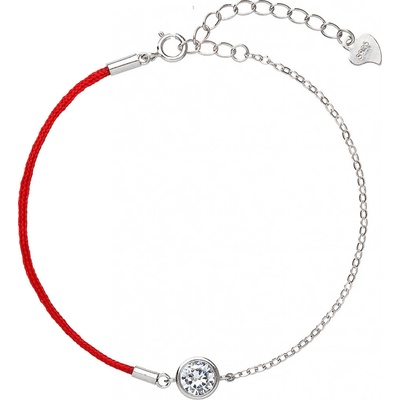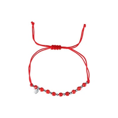 Červený textilní náramek dekorovaný stříbrným přívěskem s motivem čtyřlístku. Ozdobný prvek je pokoven vrstvou 14 kt. žlutého zlata. Délka náramku je universální s posuvnými...