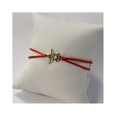 Červený textilní náramek dekorovaný stříbrným přívěskem s motivem andělíčka. Ozdobný prvek je pokoven vrstvou 14 kt. zlata. Délka náramku je universální s posuvnými uzlíky,...