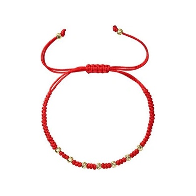 Tento Kabbalah náramek s červenou šňůrkou a ozdobnými zlatými 14karátovými kuličkami je stylovým talismanem, který kombinuje ochrannou symboliku a luxusní eleganci. Červená...