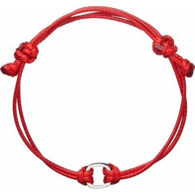 Červený textilní náramek dekorovaný kulatou stříbrnou destičkou s motivem mandaly. Ozdobný prvek je pozlacen 14 kt. zlatem Délka náramku je universální s posuvnými uzlíky,...