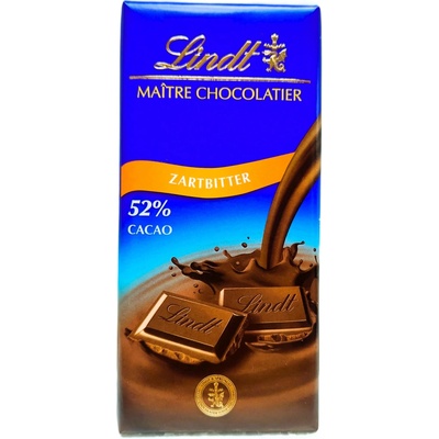 Tmavá lahodná čokoláda. Francouzská edice lahodné švýcarské čokolády s originální recepturou z tmavé čokolády s 52% kakaa.. Čokolády Lindt Maitres jsou již více než 175 let...