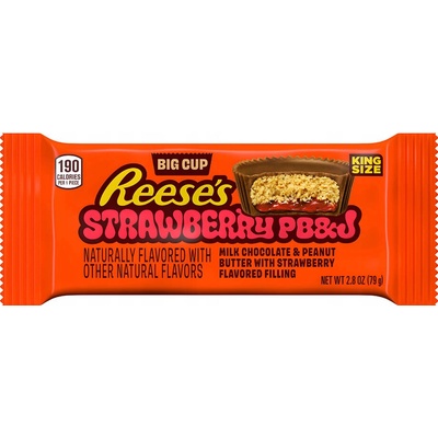 Spojení které nemůže zklamat. Jemné arašídové máslo Reese's v ikonickém čokoládovém košíčku a k tomu sladká jahodová náplň jako z amerického sendviče PB&J! Ideální na rychlé...