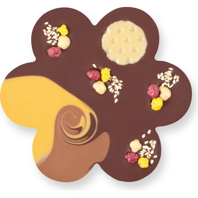 Čokoládový květ z mléčné čokolády s 50% obsahem kakaa, zdobený ovocnou meruňkovou polevou a domácím mandlovým nugátem. Květ dále zdobí křupavé kousky čokolády s mučenkou a...