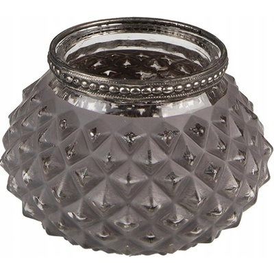 Šedý skleněný svícen na ohřívač s ozdobným okrajem - 10 x 17 cm Clayre & Eef Svícen na čajové svíčky z šedého skla s ozdobným okrajem - 10 x 17 cm od značky Clayre & Eef. -...
