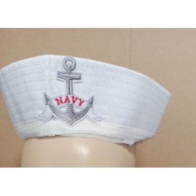 Karnevalový doplněk čapka na plavčíka v bílé barvě. Spousta zákazníku - vodáků si jí kupuje na splouvání řeky a jiné podobné akce.
