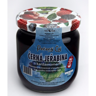 Černá jeřabina s kardamomem Nápojový koncentrát s kousky ovoce pro výrobu ovocného pečeného čaje s příchutí černé jeřabiny s kardamomem. Čaj je vyráběn podle starých poctivých receptur bez přídavku chemických látek. Rodinné balení stačí pro přípravu až 10 šálků...
