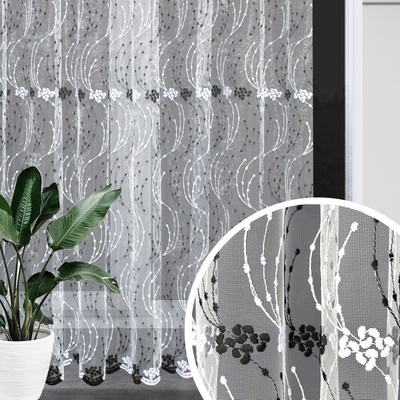 Tylová záclona s výšivkou v bílé barvě. Vyšívaná záclona bílo-černá 9473, metráž, je ideální volbou pro moderní a elegantní interiéry. Tato záclona je vyrobena z jemného...