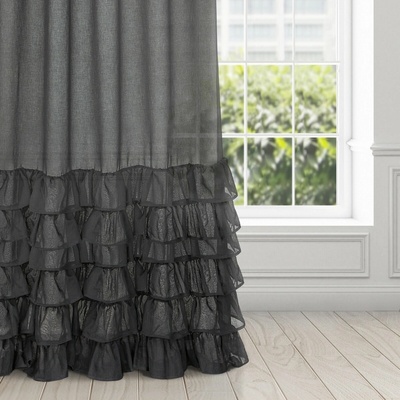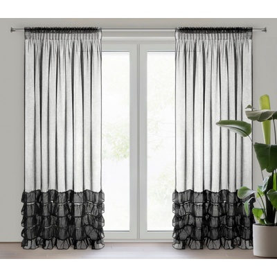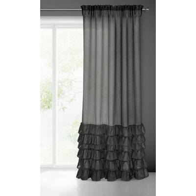 Hotová záclona zdobená volánem ve spodní části, šířka: 140 cm, délka: 250 cm, barva: černá, gramáž: 70 GSM, složení: 100% polyester.