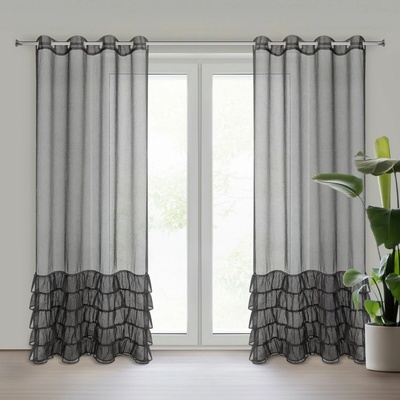 Hotová záclona zdobená volánem ve spodní části, šířka: 140 cm, délka: 270 cm, barva: černá, gramáž: 70 GSM, složení: 100% polyester.