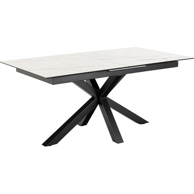 Rozkládací jídelní stůl Heaven od značky Actona je moderní kus nábytku s obdélníkovou deskou z keramiky v provedení bílý mramor, který stojí na pevných, černých ocelových...