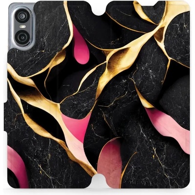 Knížkové pouzdro, obal, kryt Mobiwear na mobil Sony Xperia 10 VI - VP35S Černý a zlatavý mramor - ochrana celého telefonu, funkce stojánku, odolná TPU vanička, magnetické...
