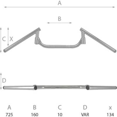 Motocyklová řidítka HIGHWAY HAWK WISHBONE průměr řidítek v gripech 25 mm (1\") délka ohybu 180 mm výška ohybu 200 mm celková šířka 800 mm rozteč pro uchycení 115 mm ...