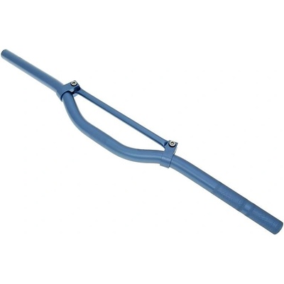 Motokros řidítka alu s hrazdou v modré barvě. Vnější průměr: 22 mm, šířka: 810mm, výška: 90 mm.