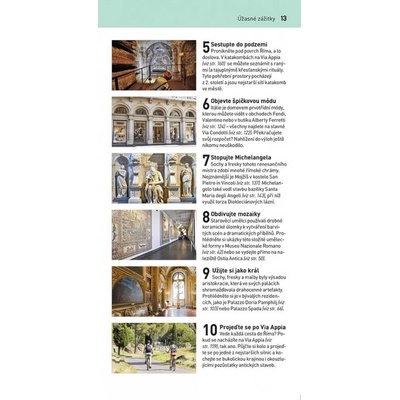 Hlavní památky jsou soustředěny na poměrně malém území, většinu z nich snadno obejdete pěšky. Tempo římského života vás donutí zpomalit a vychutnávat město i míchané nápoje po lahodných doušcích. V knize najdete tipy na nejlepší místa a zážitky.