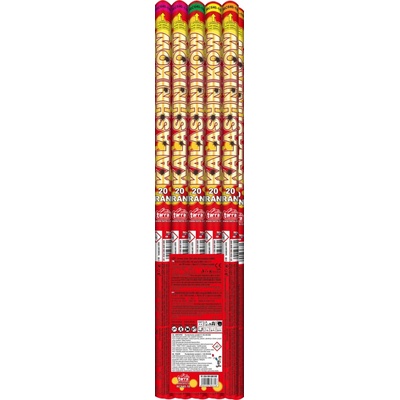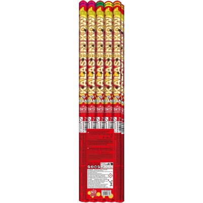ŘÍMSKÉ SVÍCE ASSORTED CANDLES KALASHNIKOW 20 RAN, v balení 10 ks. EFEKT: červené (3), zelené (3), žluté (2) světličky, crackling (2), Délka římské svíce: 64 cm. NEC: 160,6...
