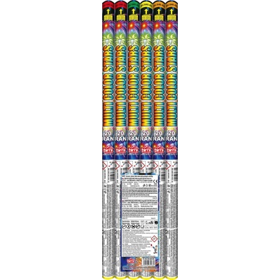 Pyrotechnika kategorie F2, která obsahuje mix 4 typů římských svící 20mm – mix římských svící 8ran(po 1ks R6008D, R6008E, R6008K,R7508E), 60cm délka.