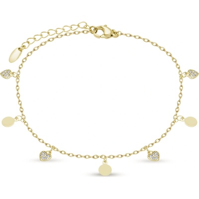 Řetízek na nohu z chirurgické oceli, pozlacený 14k, srdce se zirkony. Vyjádřete se tímto jemným pozlaceným řetízkem na nohu z chirurgické oceli s klasickým motivem srdce. Tento...