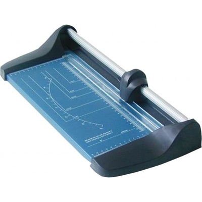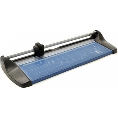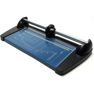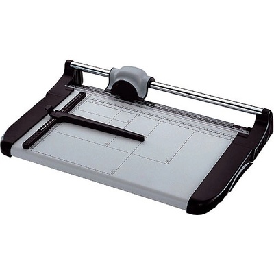 Kvalitní kolečková řezačka s pevnou kovovou základnou a řeznou hlavou umístěnou na kovové tyči, určena pro formát A4. Pracovní stůl je vybaven natištěnými měřítky a posuvnou...