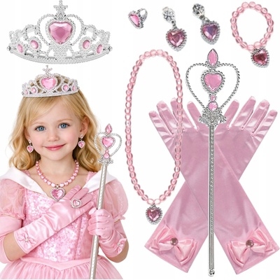 KORUNA ŽEZLO RUKAVICE SADA AURORA ROŠŤÁKA 7 DÍLŮ RŮŽOVÁ⭐❤ Růžový set princezny s korunkou, žezlem, šperky a rukavicemi promění každou holčičku v pohádkovou Auroru připravenou na...
