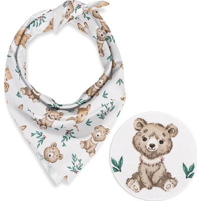Dětský bavlněný šátek s milým dětským motivem medvídků a koloušků na bílém podkladu. Je ušitý z kvalitního hustě tkaného 100% bavlněného plátna s certifikátem zdravotní...