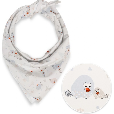 Dětský bavlněný šátek s milým dětským motivem ptáčků v jemných pastelových modro-šedo-béžových odstínech na bílém podkladu. Je ušitý z kvalitního hustě tkaného 100% bavlněného...
