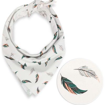 Bavlněný šátek se vzorem zeleno-růžových pírek na bílém podkladu. Je ušitý z kvalitního hustě tkaného 100% bavlněného plátna s certifikátem zdravotní nezávadnosti Oeko-Tex...