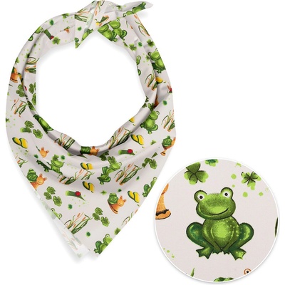 Dětský bavlněný šátek s milým dětským motivem žabek a šneků na bílém podkladu. Je ušitý z kvalitního hustě tkaného 100% bavlněného plátna s certifikátem zdravotní nezávadnosti...