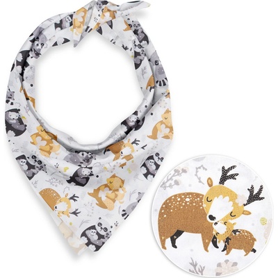 Dětský bavlněný šátek s milým dětským motivem zvířátek s mláďátky na bílém podkladu. Je ušitý z kvalitního hustě tkaného 100% bavlněného plátna s certifikátem zdravotní...