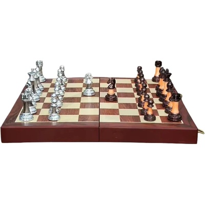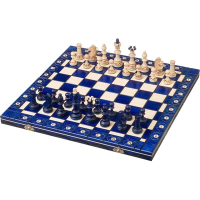 Kvalitně zhotovené šachy s hrací plochou vyrobenou z přírodního dřeva. Figurky mají na spodní části samet, aby se s nimi dobře posouvalo po hrací ploše a lze je uložit do otvorů...