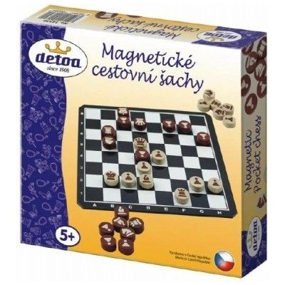 Detoa Magnetické cestovní šachy Oblíbená společenská hra v cestovním provedení. Výrobek obsahuje malou plechovou tabulku a kolečka s potiskem a magnetickou fólií. Tyto...