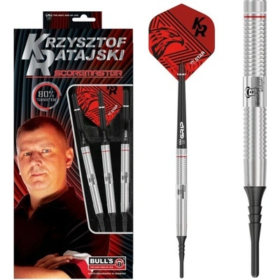 BULL'S Krzysztof Ratajski SCM 80% wolframová verze šipek Krzysztofa Ratajského je k dispozici v 22g a 24g. V horní části barrelu začíná velmi jemný úchop s červeno-bílým...