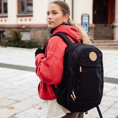 Materiál: 100% Polyester.Barva: černá.• Ergonomický školní batoh se třemi samostatně uzavíratelnými komorami s vnitřním organizérem a kapsou na 15palcový notebook či tablet....