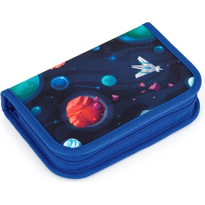 Jednopatrové školní pouzdro se dvěma klopami. Díky gumovým úchytům se do nich vejde celkem dvacetjedna pastelek, tužek a fixek. Tři širší úchyty poslouží na pravítko,...