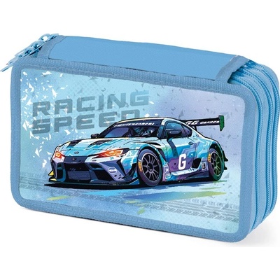 Školní třípatrový nevybavený penál ve světle modré barvě s motivem závodního auta. Díky třem patrům v něm uložíte naprosto všechny psací potřeby a pomůcky jako je pravítko,...