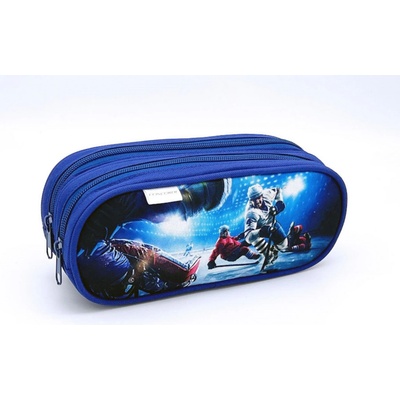 Praktická etue s motivem ledního hokeje v modré barvě. Etue má dvě samostatné prostorné komory uzavíratelné na zip. Vhodná na psací a školní potřeby, ale i jiné drobnosti....