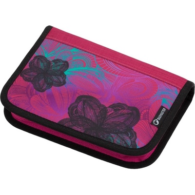 Jednoduchý školní penál oválného typu z kolekce Pearl Blossom Black. - 1-komorový penál - Vnitřek vyložen jednobarevným materiálem - 1 vnitřní kapsa na zip - Gumová poutka...