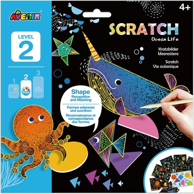 Úžasně pestrobarevná škrábací aktivita zabaví i ty nejmenší. Škrábejte speciální černý papír a vytvořte barevný mořský život. Najděte jejich jedinečné tvary a skvělou zábavu....