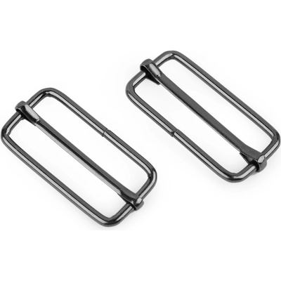 Posunovač na popruh kovový černý nikl. Rozměr vnitřní: 17 x 38 mm. Rozměr vnější: 21 x 44 mm. Tloušťka: 2,8 mm. Posunovače na popruhy využijete na popruhy ke kabelkám,...
